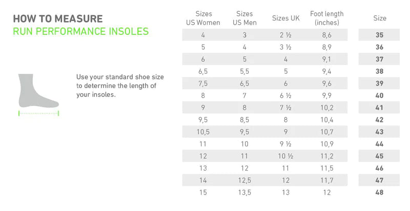 The innovative running insoles Run Performance Insoles ensure a soft and gentle step while running. They support the course of movement and increase comfort in sports shoes. The flexible insole core supports and guides the foot from below.