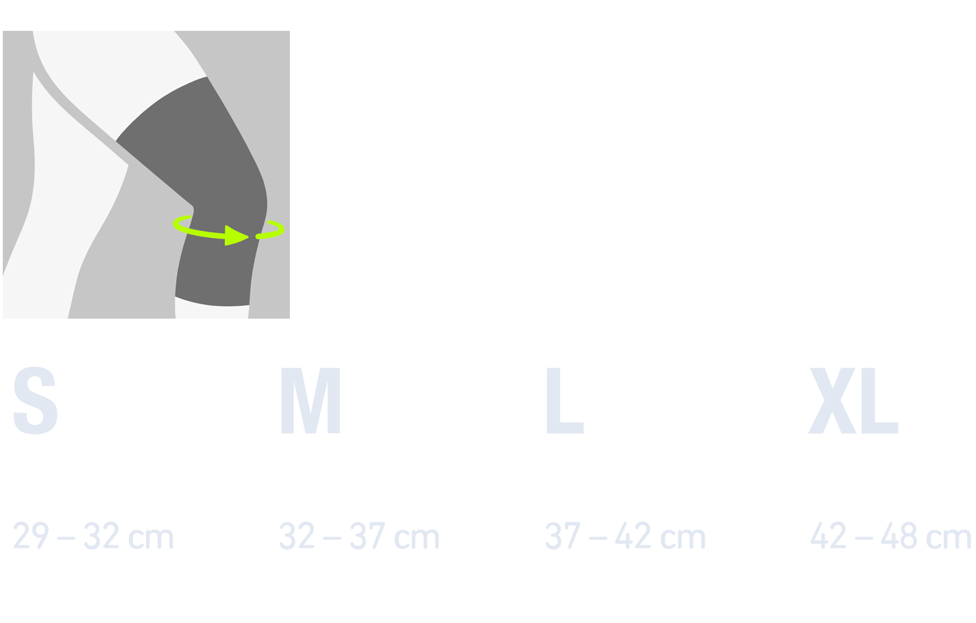 The correct size of the Sports Compression Knee Sleeve is selected using the circumference just below the kneecap. The knee support is made in Germany according to the highest quality standards.